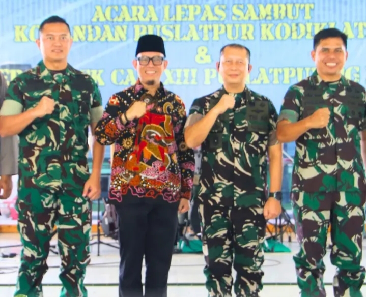 Baturaja – Bupati Ogan Komering Ulu (OKU), Provinsi Sumatera Selatan (Sumsel), H Teddy Meilwansyah hadiri acara lepas sambut Komandan Pusat Latihan Tempur (Puslatpur), Komando Pembina Doktrin, Pendidikan dan Latihan Angkatan Darat (Kodiklatad).