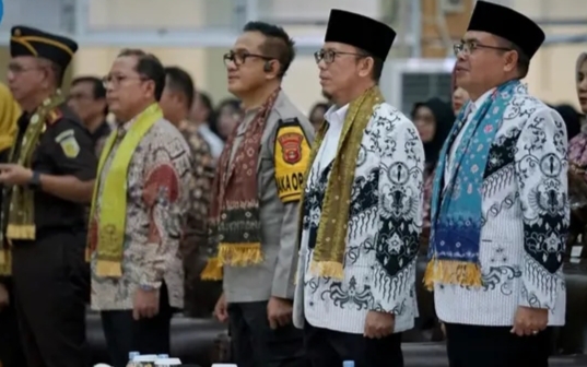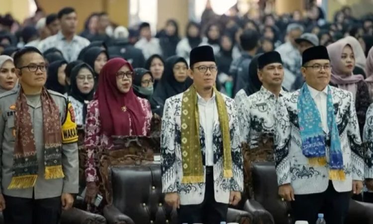 Baturaja – Peringatan HUT ke 80 PGRI dan Hari Guru Nasional tahun 2025 di Kabupaten Ogan Komering Ulu (OKU) berlangsung hikmad dan penuh makna, dipusatkan di Gedung Kesenian Baturaja yang dihadiri oleh Bupati OKU H Teddy Meilwansyah S.STP., M.M., M.Pd bersama Forkopimda OKU. Turut hadir Bunda Paud dan Bunda Literasi OKU Hj Zwesty Karenia Teddy, serta tamu undangan dan seluruh guru di Kabupaten OKU. Kamis (27/11/2025).