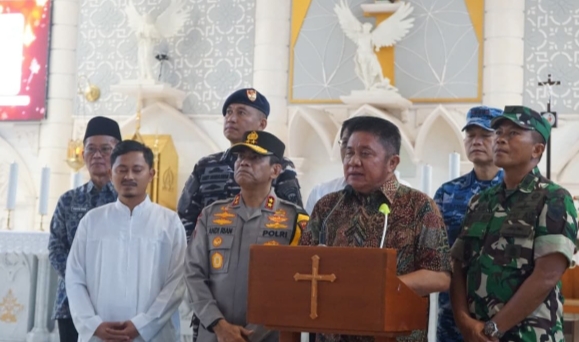 Palembang – Dalam rangka memastikan keamanan dan kenyamanan masyarakat selama perayaan Natal dan Tahun Baru, Gubernur Sumatera Selatan (Sumsel), H. Herman Deru dan Kapolda Sumatera Selatan Irjen Pol Andi Rian R. Djajadi, S.I.K., M.H., didampingi oleh Komandan Satuan Brigade Mobil (Dansat Brimob) Polda Sumatera Selatan, Kombes Pol Susnadi, S.I.K., melaksanakan kegiatan pemantauan dan kunjungan ke sejumlah tempat ibadah / gereja serta Pos Pengamanan (Pos Pam) Operasi Lilin Musi 2025.
