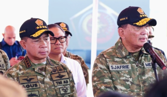 Morowali Sulteng – Menteri Pertahanan (Menhan) RI Sjafrie Sjamsoeddin didampingi Panglima TNI Jenderal TNI Agus Subiyanto bersama Jaksa Agung ST Burhanuddin, Kepala BPKP Muhammad Yusuf beserta pejabat terkait, saksikan secara langsung pelaksanaan Latihan Komando Gabungan (Kogab) TNI yang terintegrasi Tahun 2025 di kawasan Bandara PT IMIP, Morowali, Sulawesi Tengah. Kamis (20/11/2025).